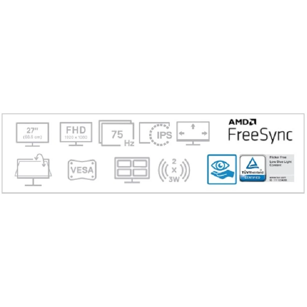 68.6cm (27") Full HD 1920 x 1080 LED IPS, 16:9, 300cd/m?, 16.78M, 4ms, 178?/178?, 1000:1