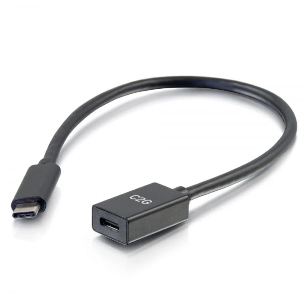 1ft USB-C to C 3.1 (Gen 2) Male to Female Extension Cable (10Gbps) C2G 1ft USB-C to C 3.1 (Gen 2) Male to Female Extension Cable (10Gbps). Cable length: 0.3 m. Connector 1: USB C, Connector 2: USB C, USB version: USB 3.2 Gen 2 (3.1 Gen 2), Maximum data transfer rate: 10 Gbit/s, Connector contacts plating: Nickel, Product colour: Black The USB-C to C 3.1 (Gen 2) Male to Female Extension Cable is perfect for extending a USB-C connection on a USB-C equipped laptop, smartphone, or tablet. The extension cable supports fast charging and data transfer speeds up to 10Gbps.