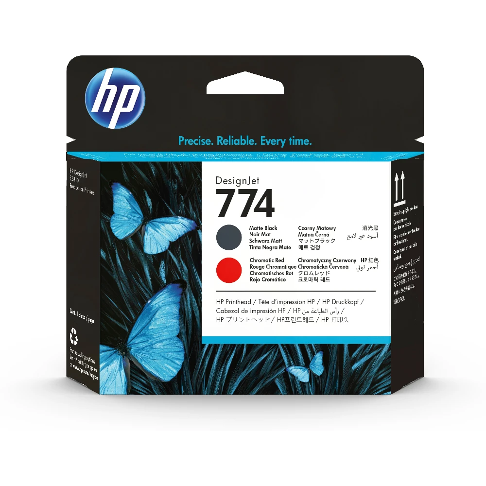 HP 774 Matte Black/Chromatic Red DesignJet Printhead. Black ink type: Pigment-based ink, Colour ink type: Pigment-based ink, Supply type: Multi pack, Quantity per pack: 1 pc(s)