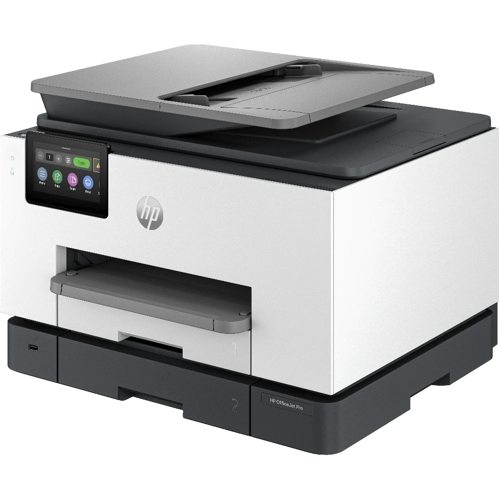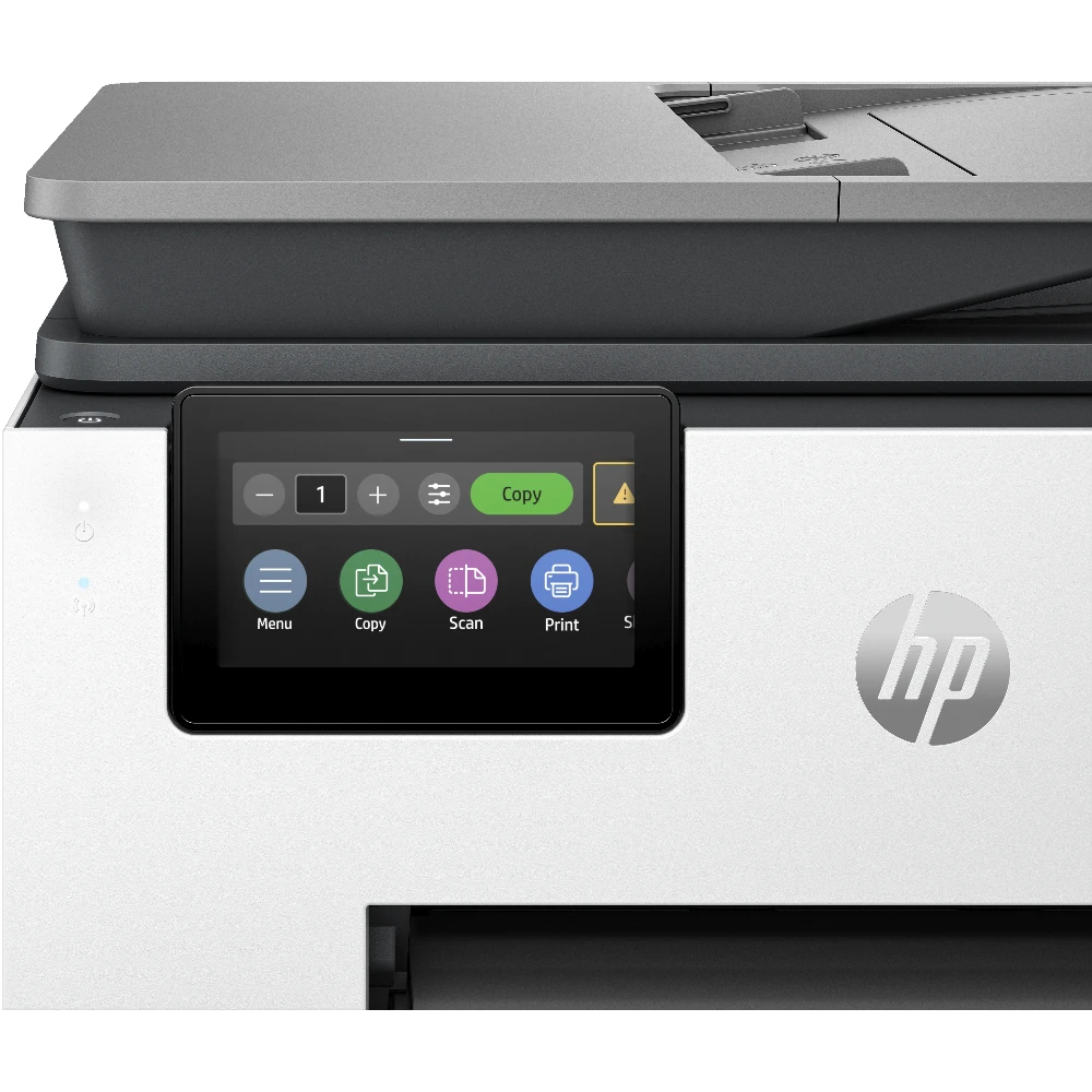 HP OfficeJet Pro 9132e All-in-One Printer, Color, Printer for Small medium business, Print, copy, scan, fax, Wireless; +; Instant Ink eligible; Two-sided printing; Two-sided scanning; Automatic document feeder; Fax; Touchscreen; Smart Advance Scan; Instant Paper. Print technology: Thermal inkjet, Printing: Colour printing, Maximum resolution: 4800 x 1200 DPI, Print speed (colour, normal quality, A4/US Letter): 20 ppm. Copying: Colour copying, Maximum copy resolution: 600 x 600 DPI. Scanning: Colour scanning, Optical scanning resolution: 1200 x 1200 DPI. Faxing: Colour faxing. Duplex functions: Print, Scan, Fax. Maximum ISO A-series paper size: A4. Wi-Fi. Direct printing. Product colour: Grey