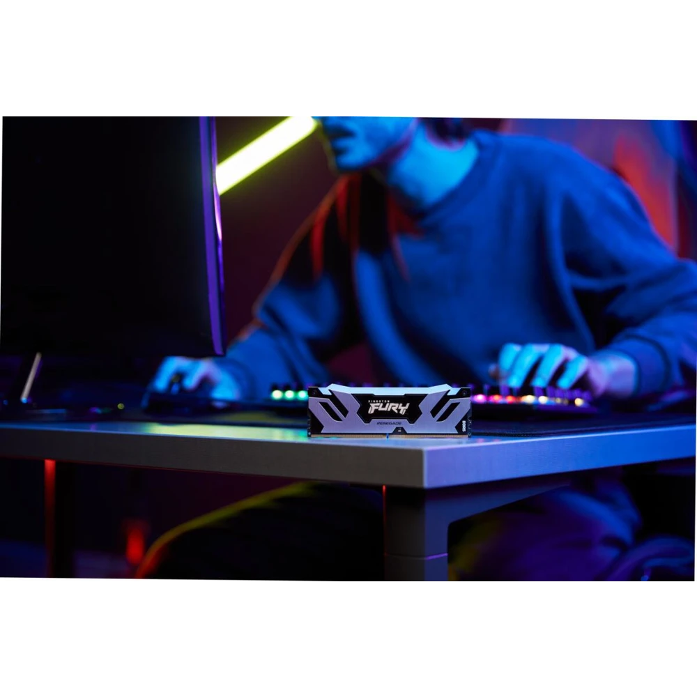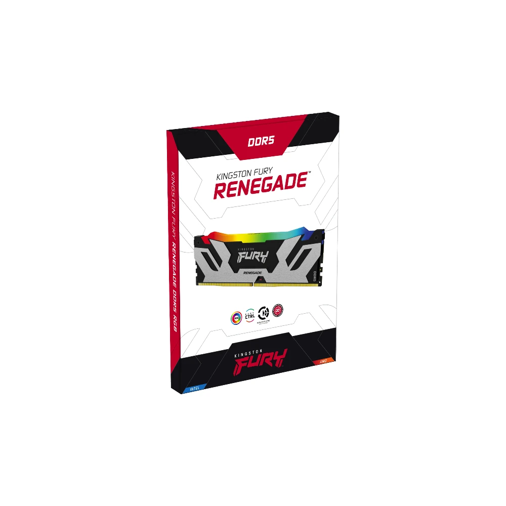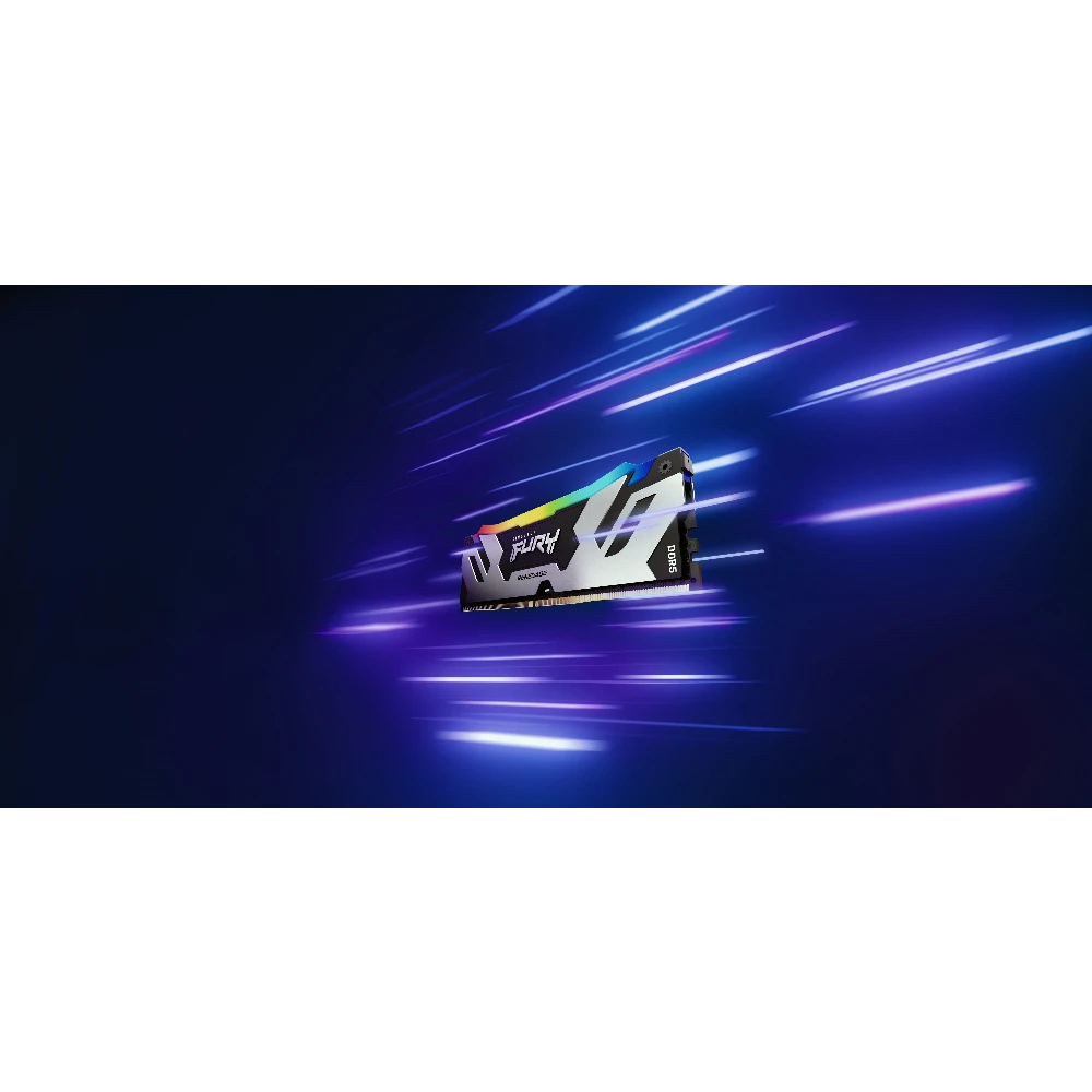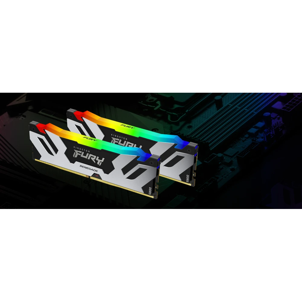 Game in style with Kingston FURY™ Renegade DDR5 RGB** memory, designed for extreme performance on next-gen DDR5 platforms. Give your system the performance boost and flair needed to stay on top with UDIMM or CUDIMM module types for ultra-fast memory at up to 8000MT/s with UDIMMs and 8800MT/s* with CUDIMMs, while utilising FURY CTRL™, 18 customisable RGB lighting effects. Kingston FURY Renegade DDR5 RGB features sleek, newly designed black & silver or white & silver heat spreaders with dynamic light bars featuring 12 LEDs that utilise Kingston’s patented Infrared Sync Technology to provide smooth, synchronised RGB lighting effects that complement the look of the latest PC builds.