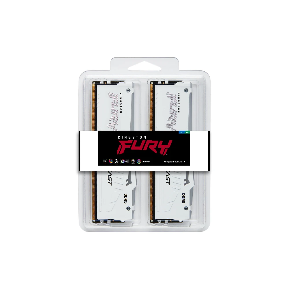 32GB 6800MT/s DDR5 CL34 DIMM (Kit of 2) FURY Beast White RGB EXPO Kingston Technology FURY Beast 32GB 6800MT/s DDR5 CL34 DIMM (Kit of 2) White RGB EXPO. Component for: PC, Internal memory: 32 GB, Memory layout (modules x size): 2 x 16 GB, Internal memory type: DDR5, Memory form factor: 288-pin DIMM, CAS latency: 34, ECC, Product colour: White Kingston FURY™ Beast DDR5 RGB Memory - up to 6800MT/s
