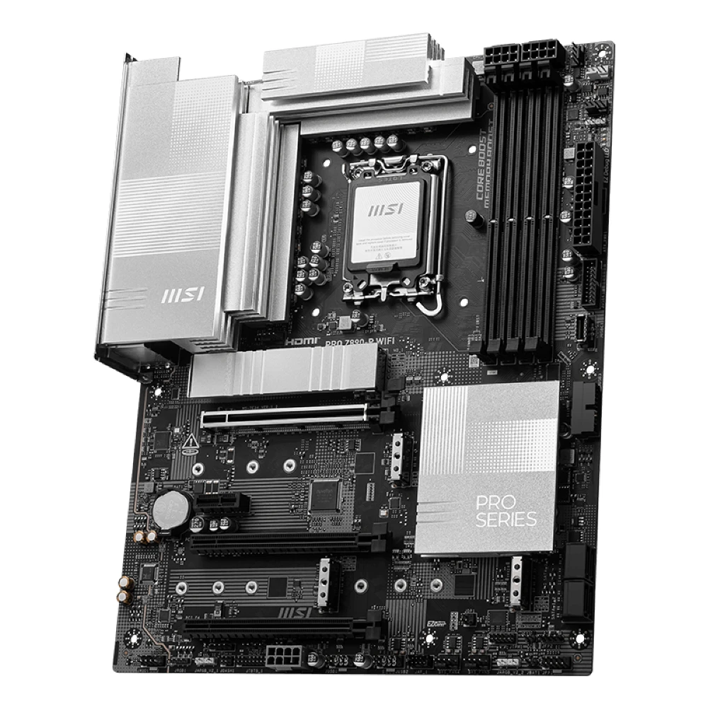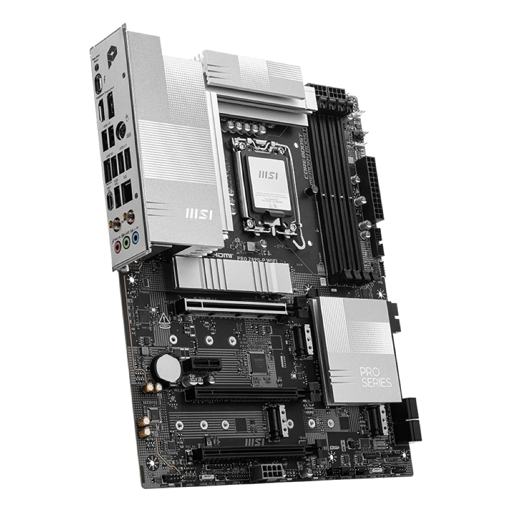 PRO Z890-P WIFI offers a simple design with a harmonious silver color scheme that perfectly matches both white and black PC builds. It is engineered with many exclusive features of MSI, a true Wi-Fi 7 with EZ Antenna, 5G LAN, Thunderbolt 4, PCIe 5.0 M.2 with EZ M.2 Shield Frozr II, and Supplemental PCIe Power, ready for the Intel® Core™ Ultra processors.