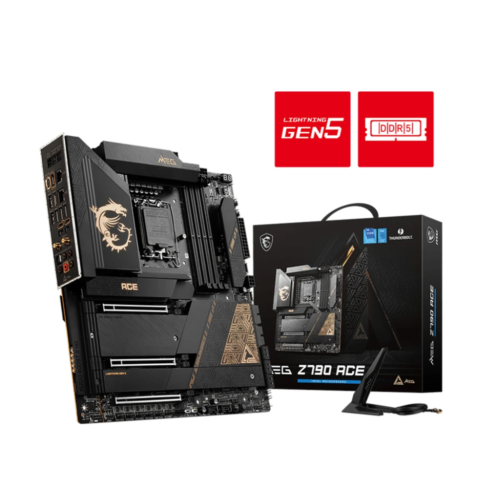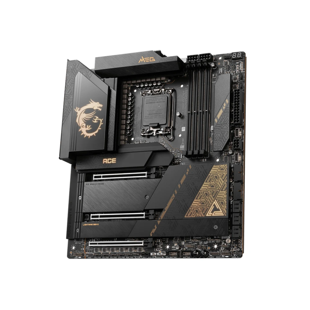 Furnished premium aesthetics with its dark black finish and gold embellishes. Developed to unlock the full gaming potential of the latest 13th Gen Intel® Core processor by combining elite hardware system support and premium durability, the MEG Z790 ACE is an outstanding E-ATX platform for extreme settings in terms of overclocking the processor, memory, and graphics card at the highest level.