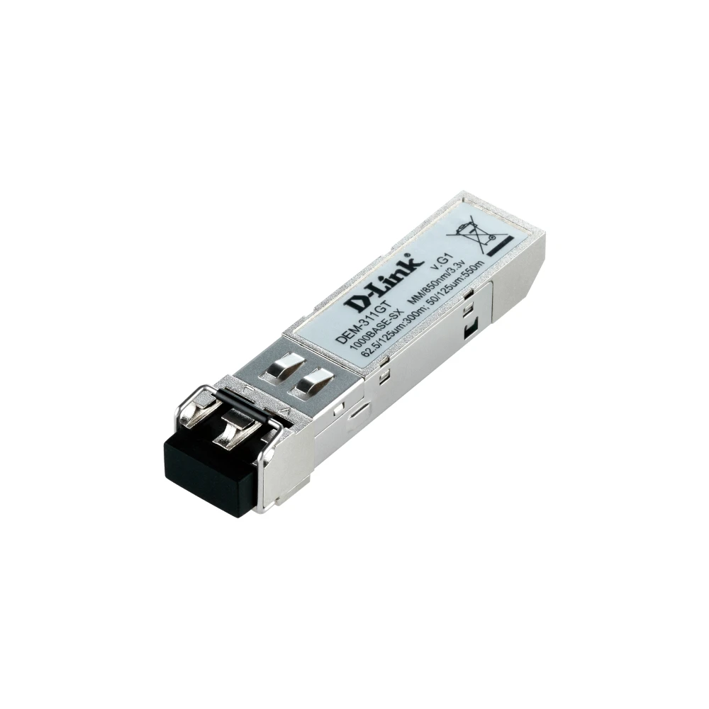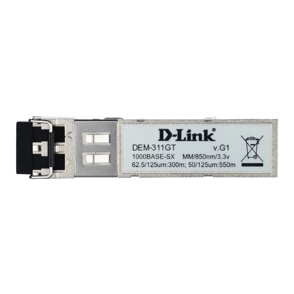 D-Link DEM-311GT. SFP transceiver type: Fiber optic, Maximum data transfer rate: 1000 Mbit/s, Interface type: SFP. Package width: 74 mm, Package depth: 131 mm, Package height: 49 mm. Shipping (inner) case length: 36 cm, Shipping (inner) case width: 26 cm, Shipping (inner) case height: 31 cm