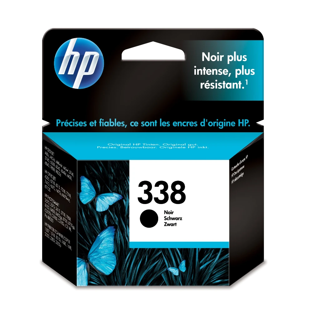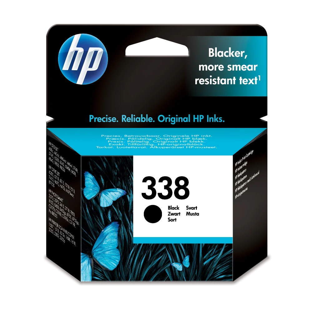 HP 338 Ink Cartridges deliver consistent results. This enhanced black ink prints laser-quality text and provides greater resistance to highlighter pen smear.