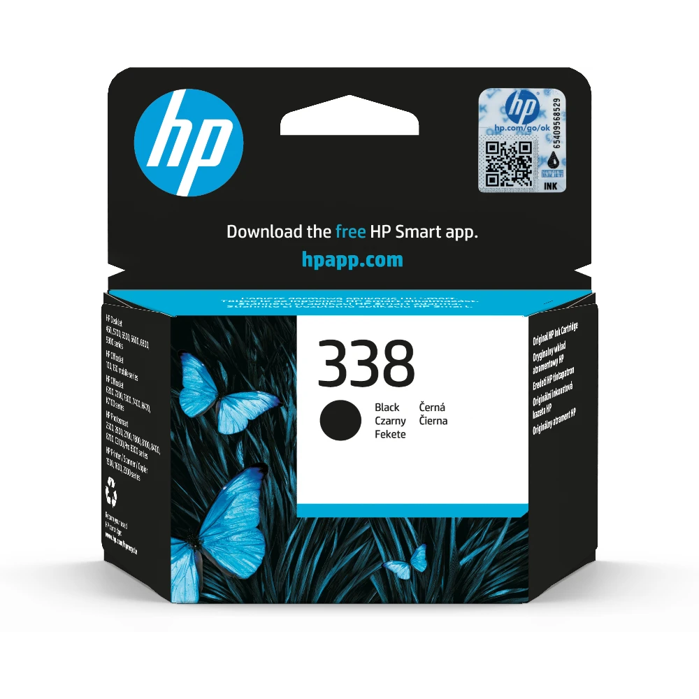 HP 338 Black Original Ink Cartridge. Colour ink type: Dye-based ink, Cartridge capacity: Standard Yield, Black ink type: Pigment-based ink, Printing colours: Black, Quantity per pack: 1 pc(s), Black ink page yield: 480 pages