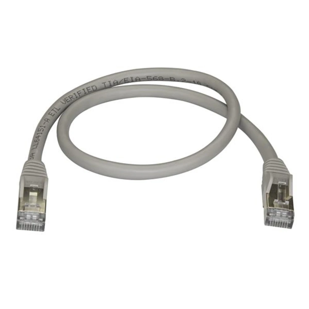 - 0.50 m Gray CAT6a Ethernet cable w/100% copper delivers 10 gigabit network connection|Fluke tested to comply w/ ANSI/TIA-568-D Category 6 requirements - Shielded pairs protect against crosstalk noise and electromagnetic interference - 26 AWG stranded copper conductors|Up to 100W for PoE applications|Built w/ ETL and UL verified wire (E132276-A) - 50-micron gold-plated RJ45 connectors provide clear signals stop rust/corrosion - Snagless connector patch cord easily pulls through wiring conduits