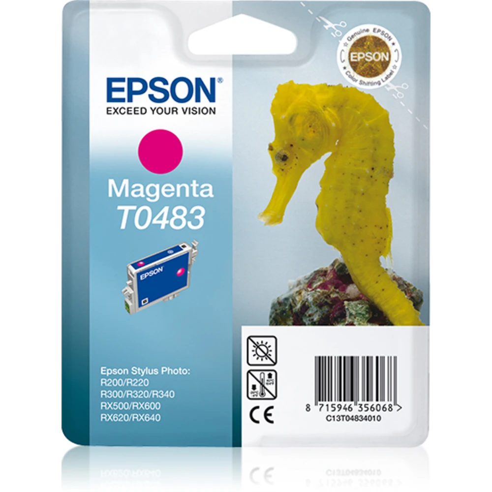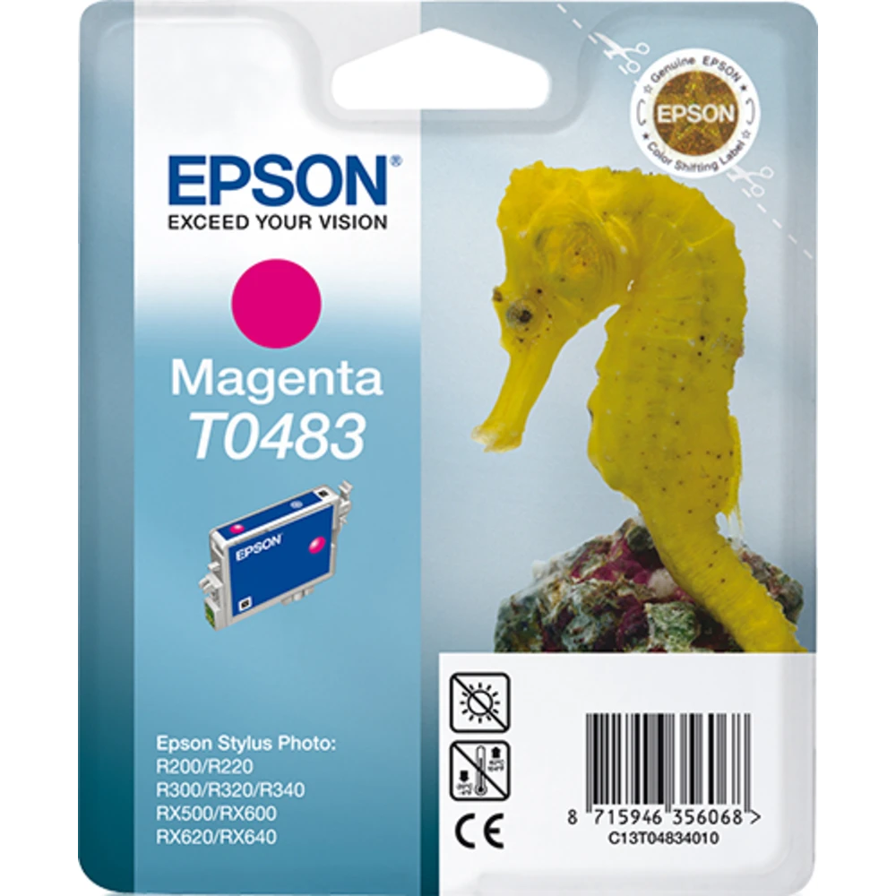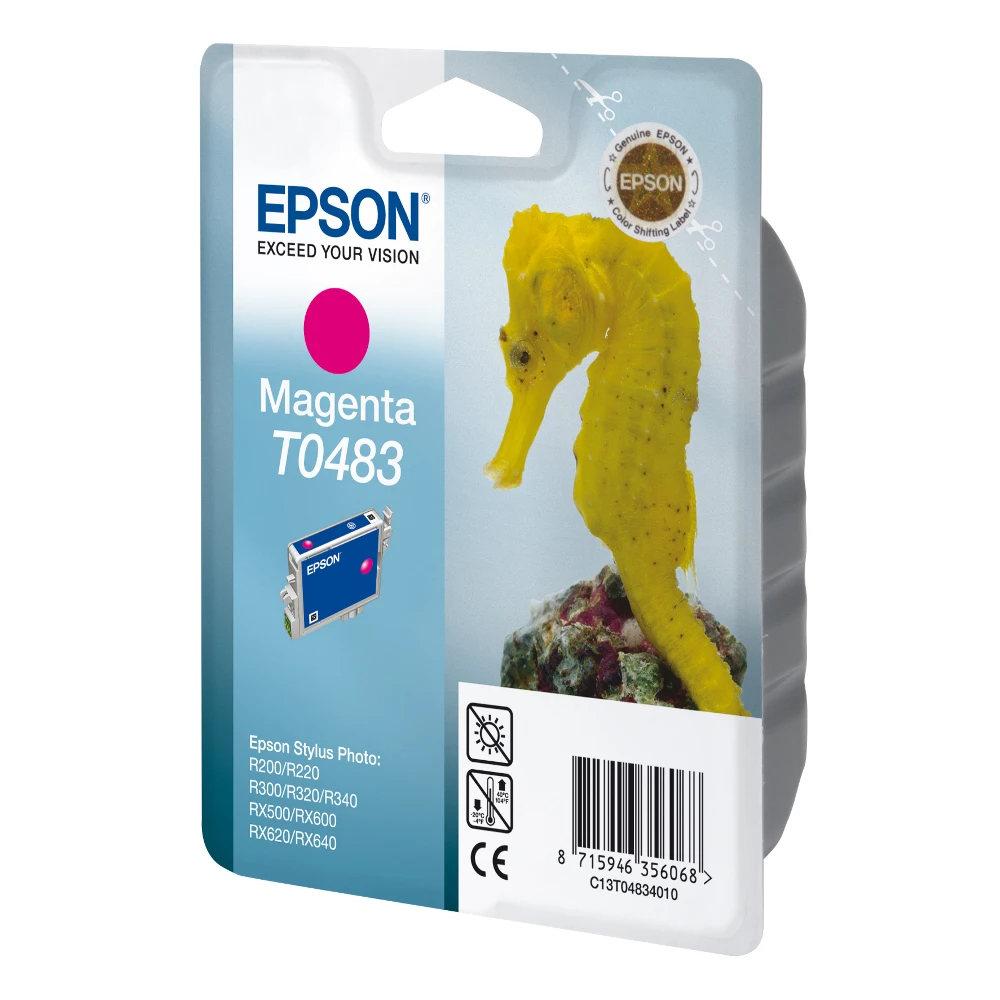 Epson Seahorse Singlepack Magenta T0483. Colour ink type: Pigment-based ink, Printing colours: Magenta, Quantity per pack: 1 pc(s)