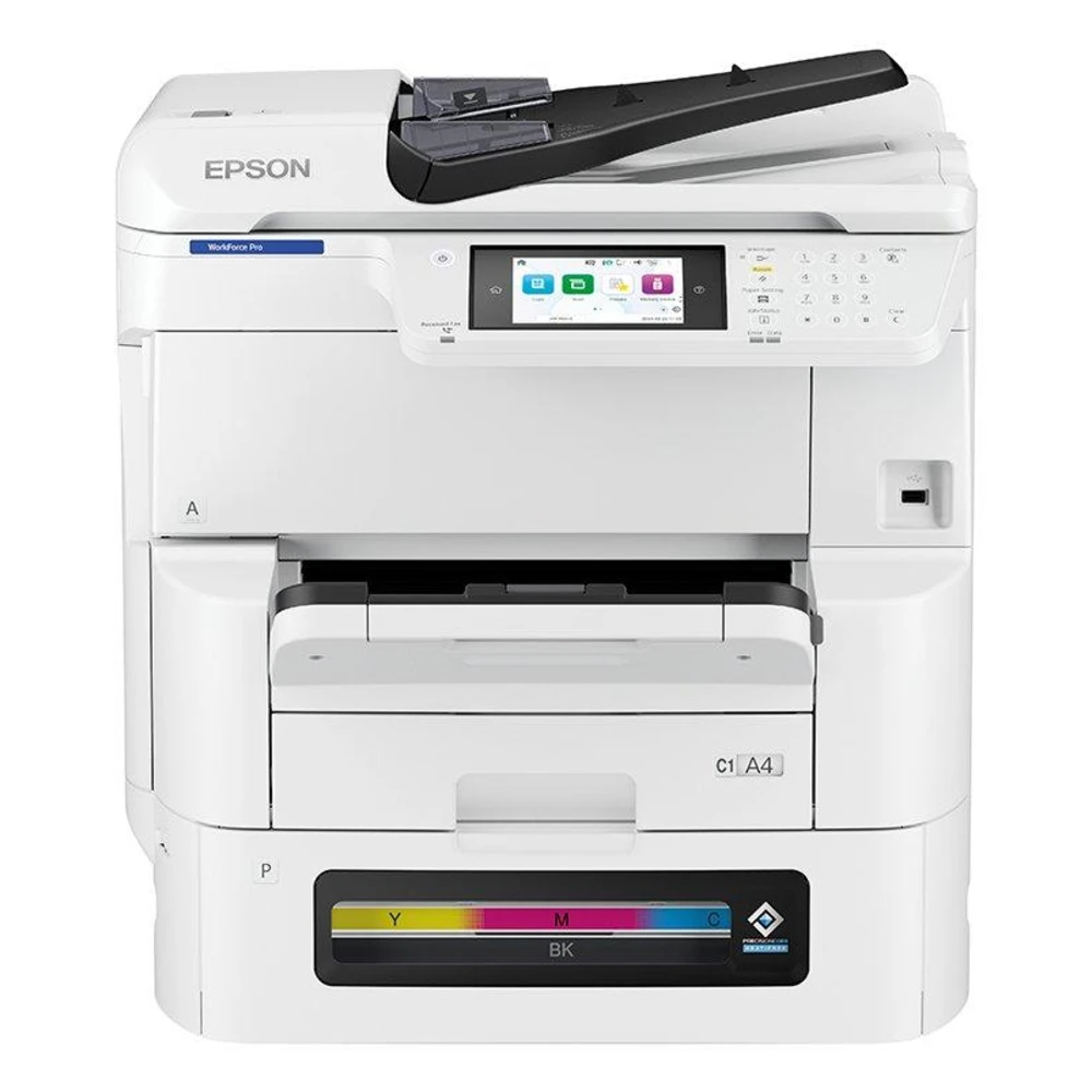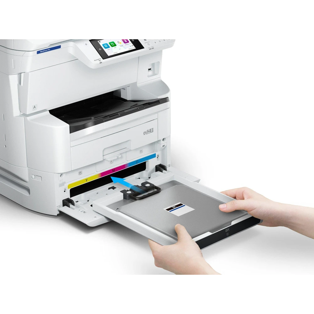 WorkForce Pro EM-C8100RDWF Epson WorkForce Pro EM-C8100RDWF. Print technology: Inkjet, Printing: Colour printing, Maximum resolution: 4800 x 1200 DPI. Copying: Colour copying, Maximum copy resolution: 600 x 600 DPI. Scanning: Colour scanning, Optical scanning resolution: 1200 x 2400 DPI. Faxing: Colour faxing. Duplex functions: Print, Scan. Maximum ISO A-series paper size: A3. Wi-Fi. Direct printing. Product colour: White A3 colour high ink-yield RIPS with low power consumption