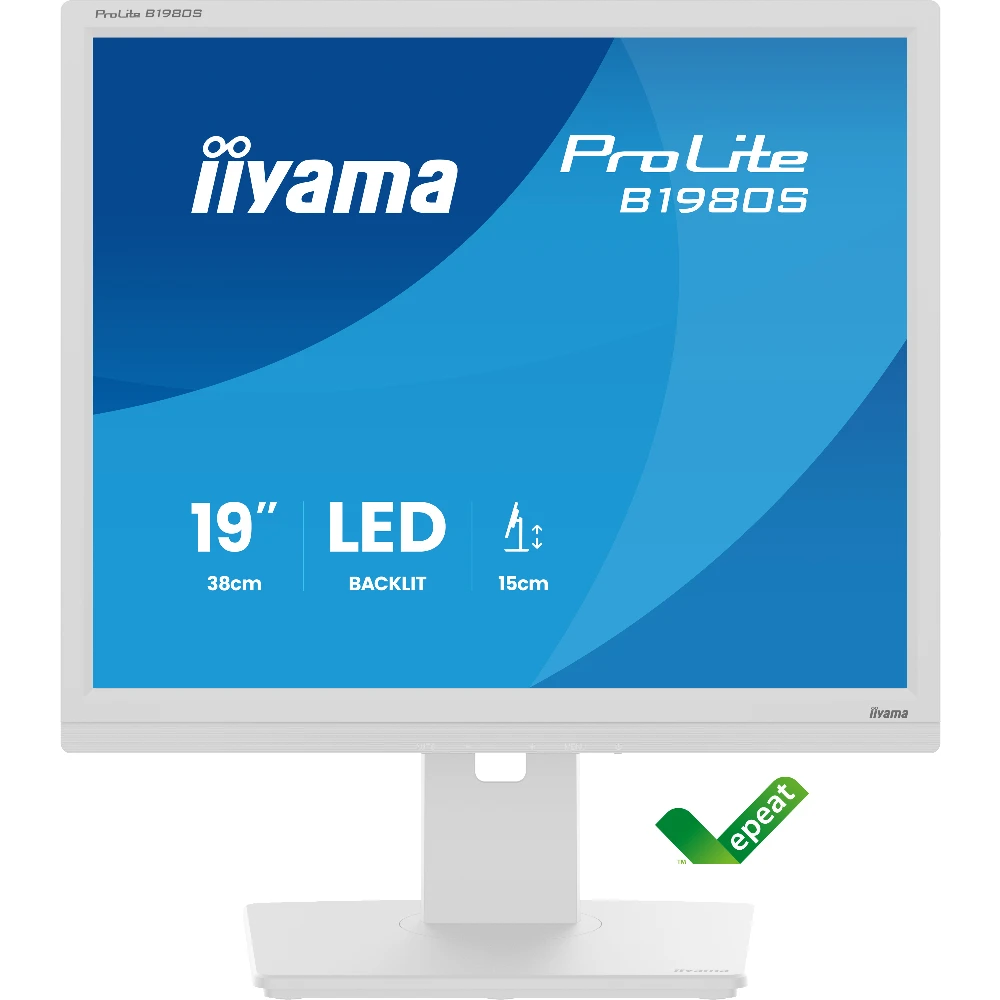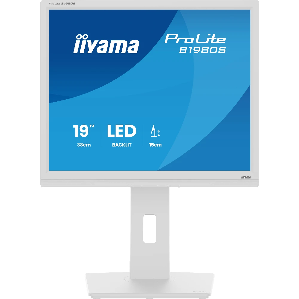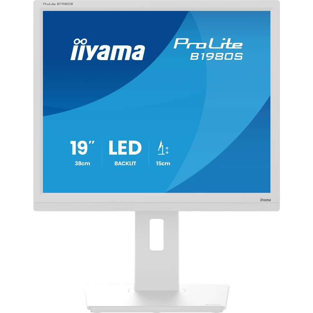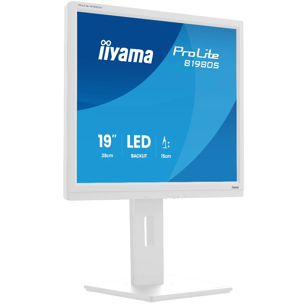 iiyama ProLite B1980S-W1. Display diagonal: 48.3 cm (19"), Display resolution: 1280 x 1024 pixels, HD type: SVGA, Display technology: LED, Response time: 3 ms, Native aspect ratio: 5:4, Viewing angle, horizontal: 170°, Viewing angle, vertical: 160°. Built-in speaker(s). VESA mounting, Height adjustment. Product colour: White