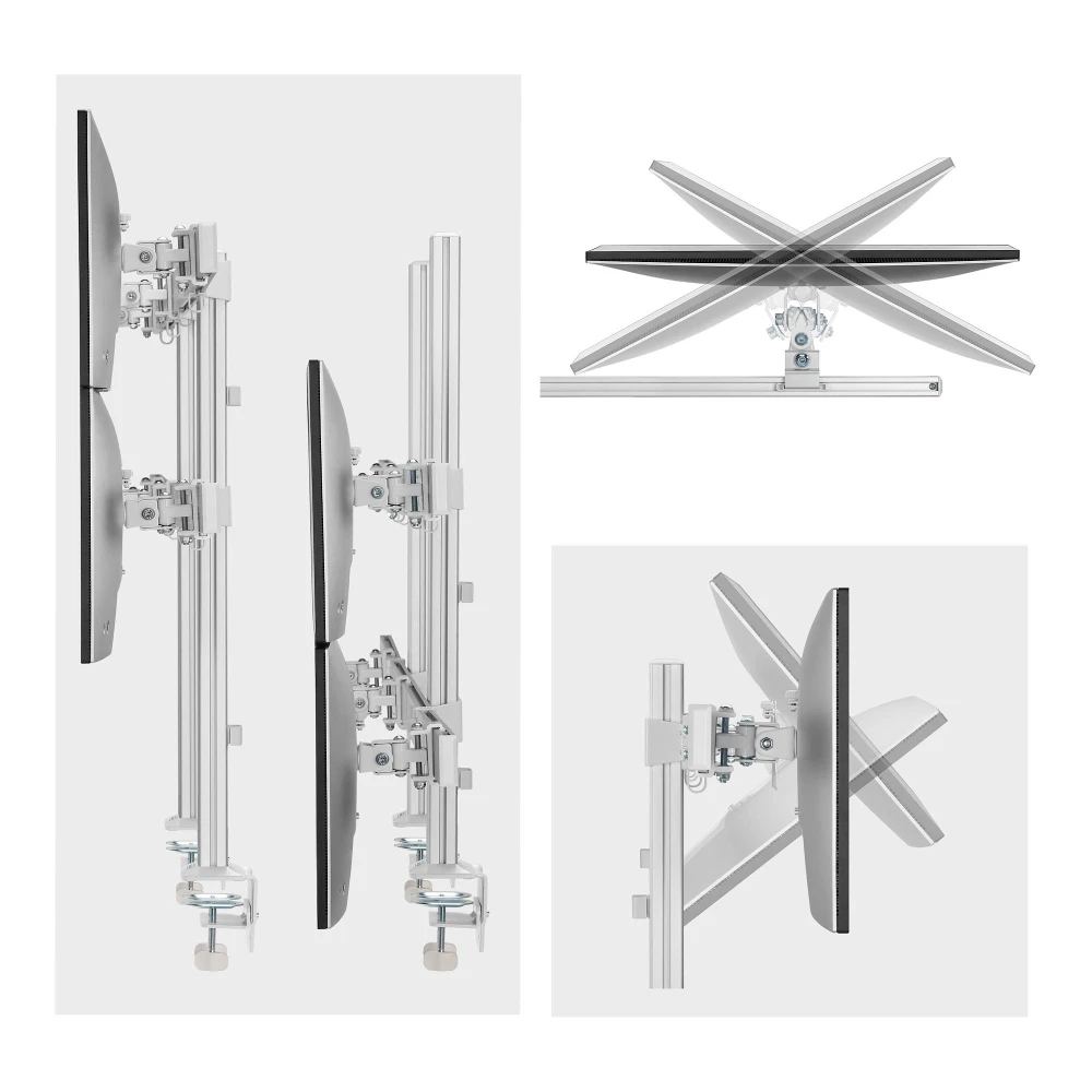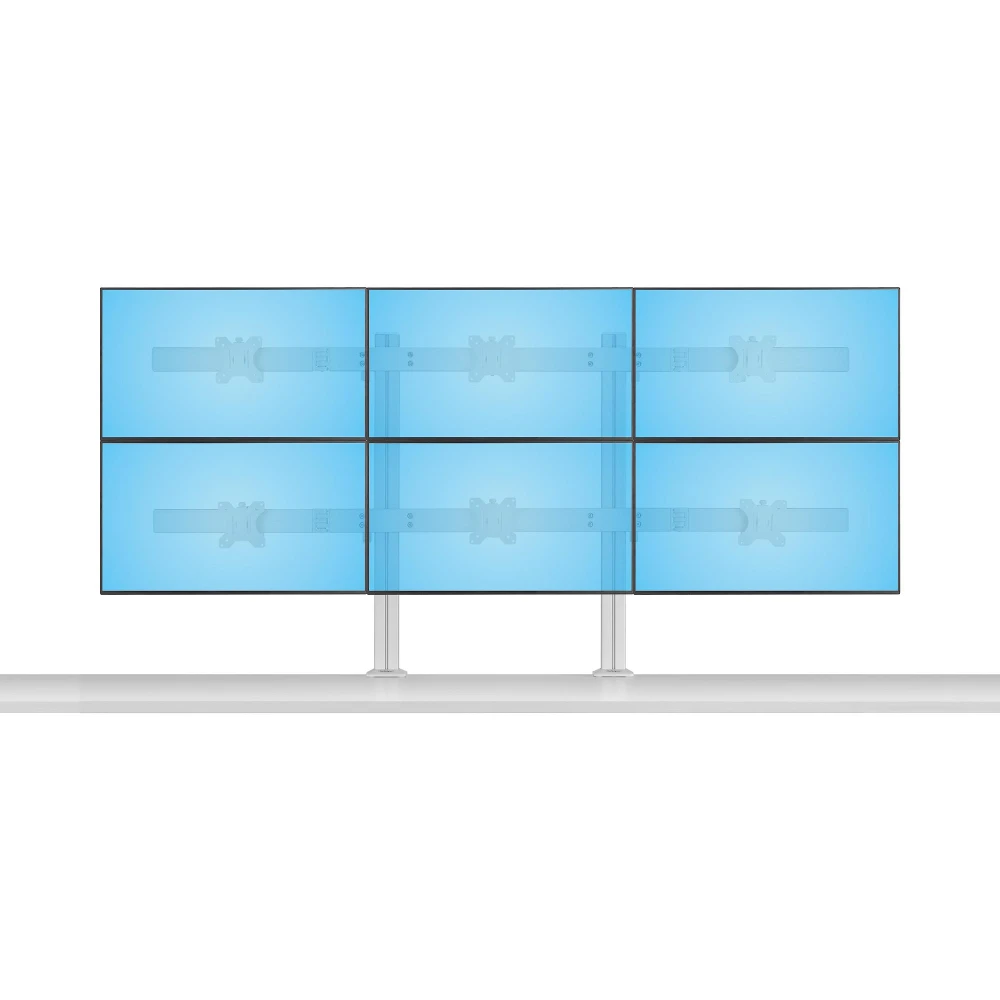 This monitor desk mount is designed to support up to six 32-inch displays, creating an ergonomic multi-monitor setup that provides a vast viewing area for productivity.