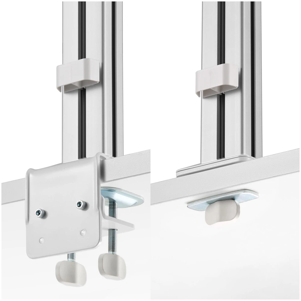 The dual-column design, sturdy aluminum construction, and enhanced c-clamp base ensure long-lasting stability. This design prevents tilting over time and evenly distributes weight across the desk for reliable support.