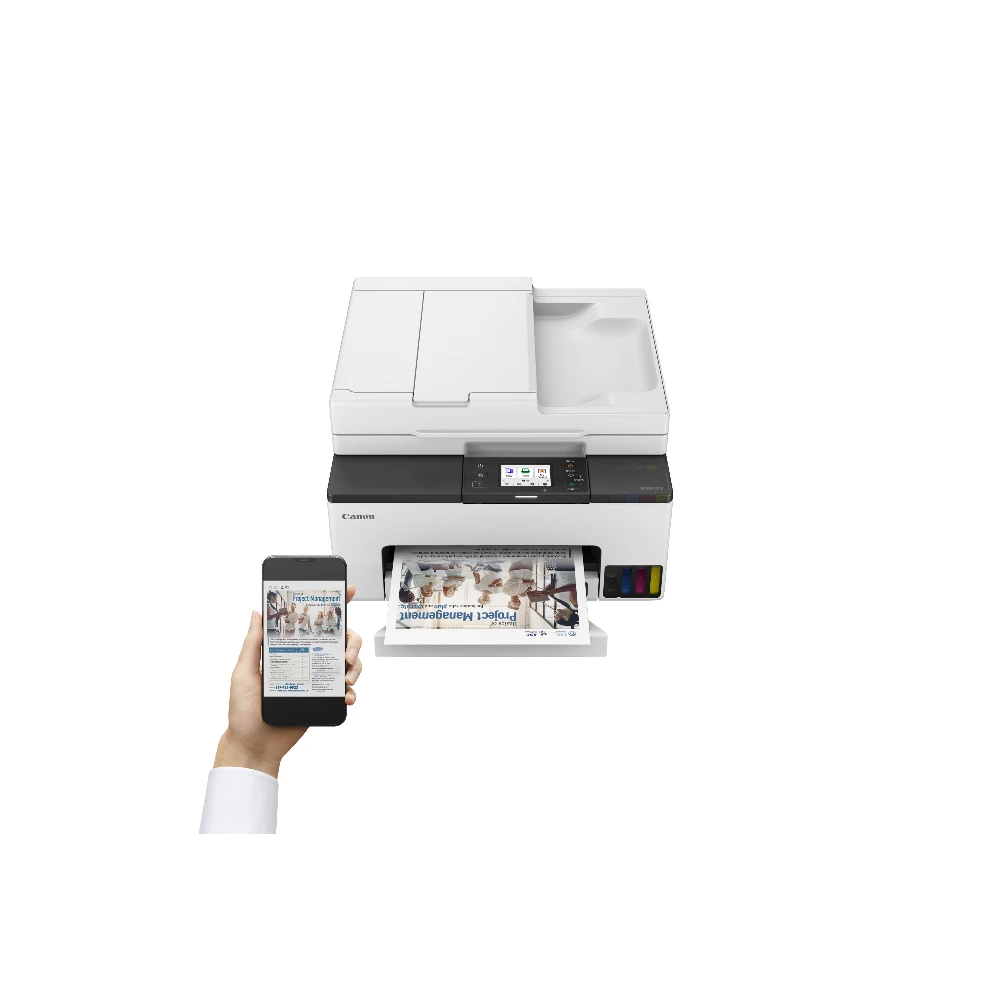 Canon MAXIFY GX2050. Print technology: Inkjet, Printing: Colour printing, Maximum resolution: 600 x 1200 DPI. Copying: Colour copying. Scanning: Colour scanning, Optical scanning resolution: 1200 x 2400 DPI. Faxing: Colour faxing. Duplex functions: Print. Maximum ISO A-series paper size: A4. Wi-Fi. Product colour: Black, White