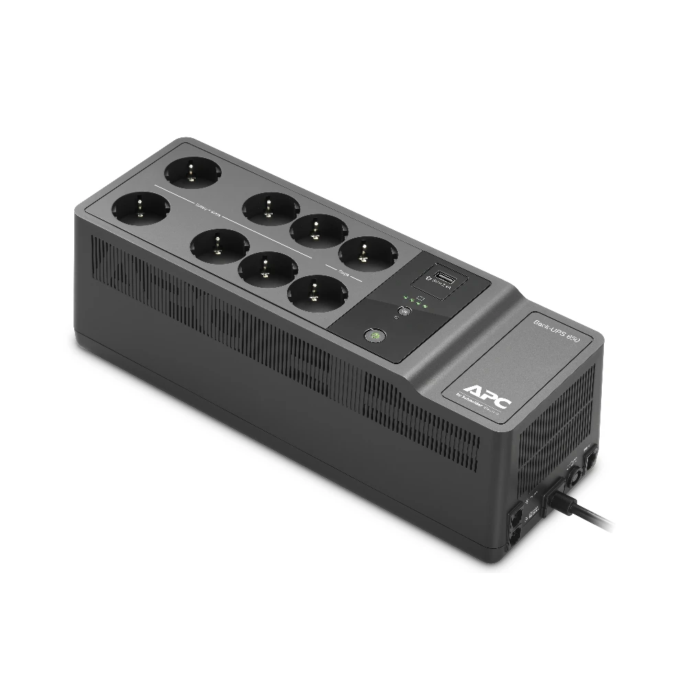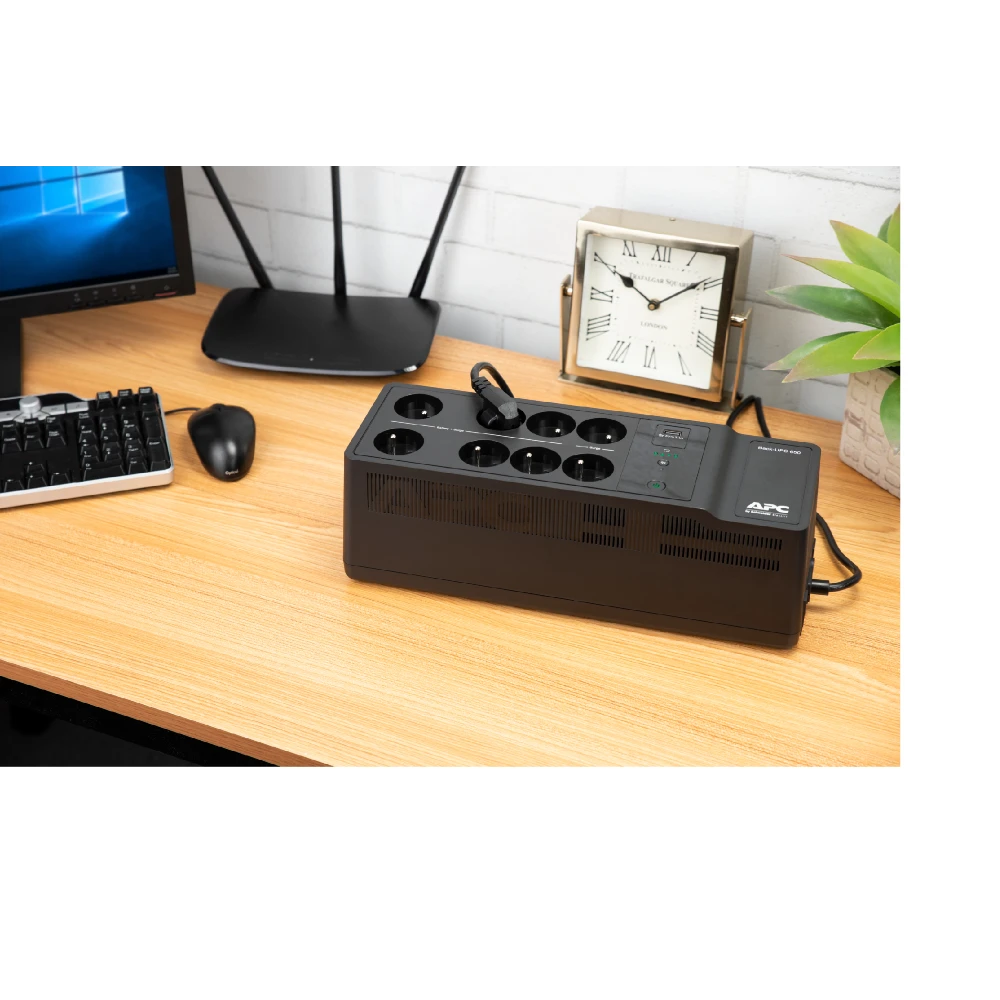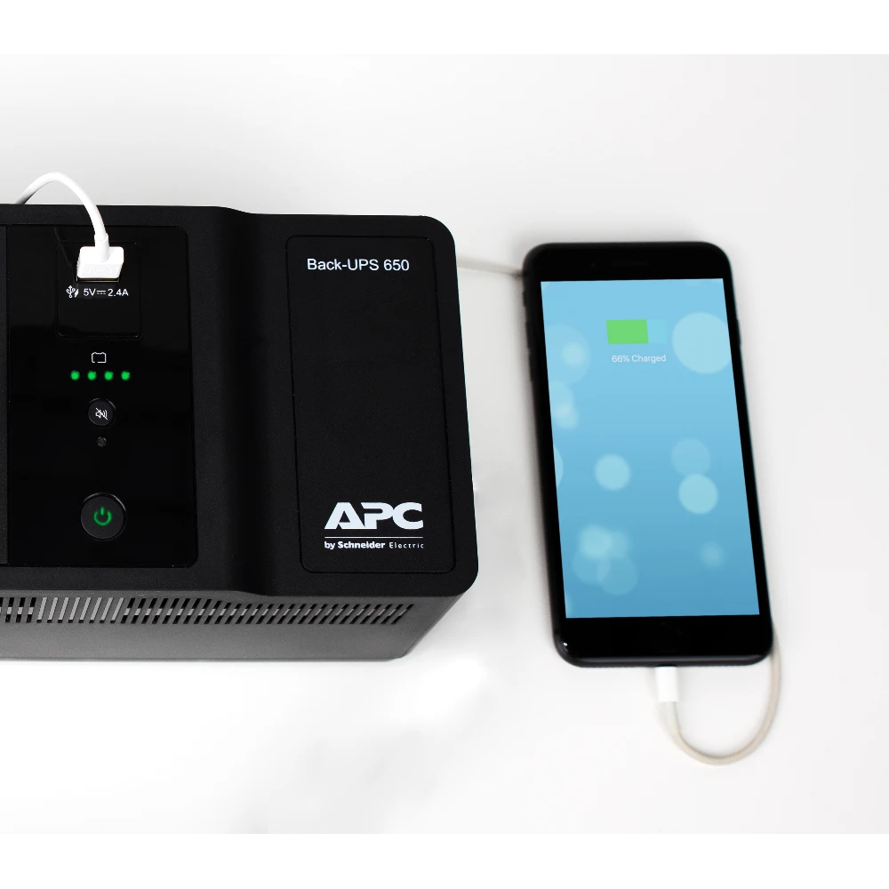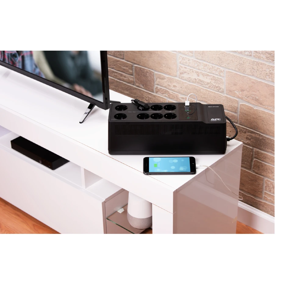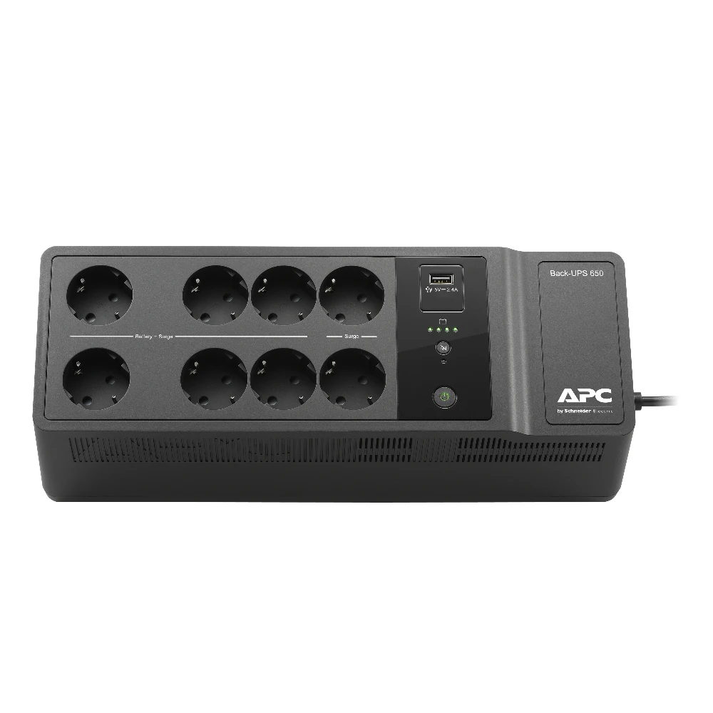 APC Back-UPS 650VA 230V 1 USB charging port - (Offline-) USV. UPS topology: Standby (Offline), Output power capacity: 0.65 kVA, Output power: 400 W. AC outlet types: Type F, Power plug: Type F, AC outlets quantity: 8 AC outlet(s). Form factor: Compact, Product colour: Black. Sustainability certificates: Green Premium