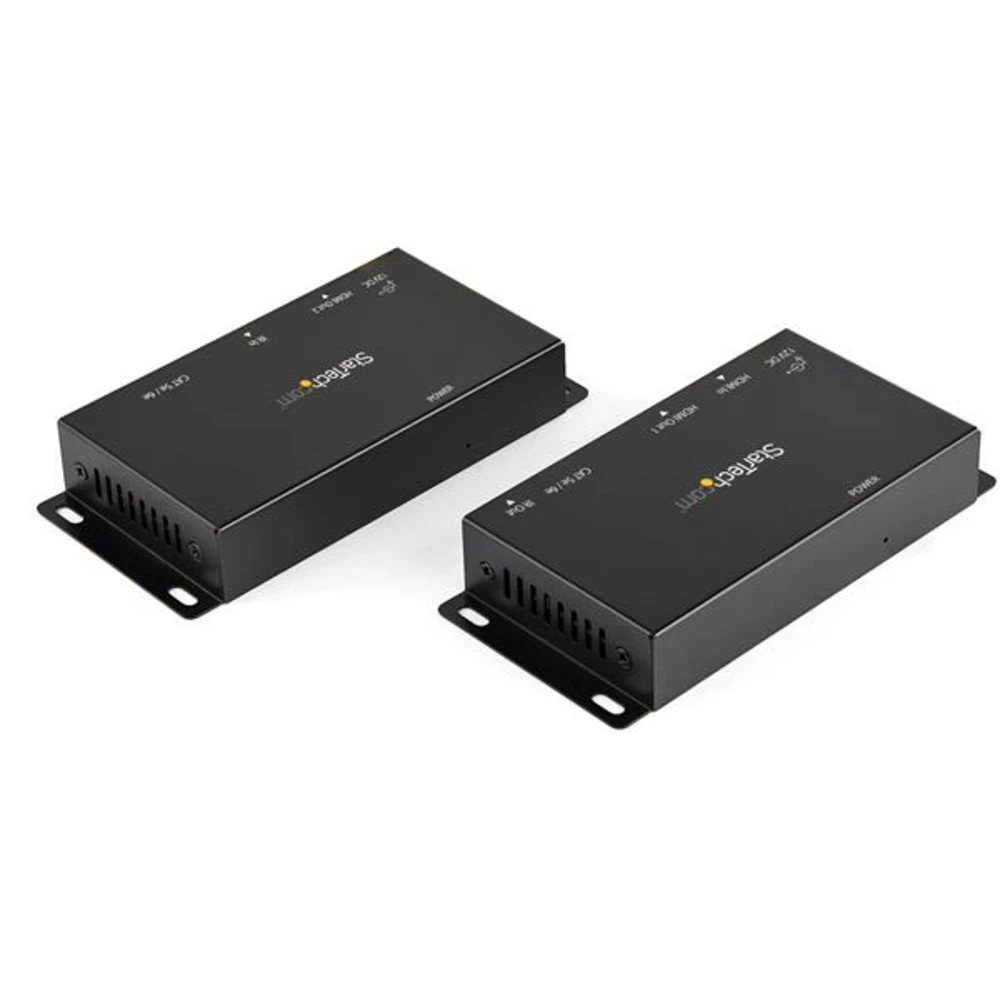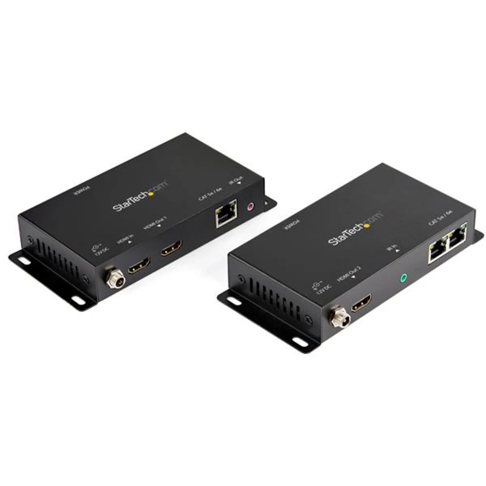 StarTech.com HDMI over IP Extender - 1080p 60Hz HDMI Video over Ethernet/LAN Extender through Network Switch - Transmitter/Receiver Kit - up to 490ft (150m) over Cat5e/Cat6 Cable (ST12MHDLNV) StarTech.com HDMI over IP Extender - 1080p 60Hz HDMI Video over Ethernet/LAN Extender through Network Switch - Transmitter/Receiver Kit - up to 490ft (150m) over Cat5e/Cat6 Cable. Type: AV transmitter & receiver, Maximum resolution: 1920 x 1080 pixels, Cable types supported: Cat5e, Cat6. Connectivity technology: Wired. AC input voltage: 100 - 240 V, Operating voltage: 12 V, Output current: 1.5 A. Width: 70 mm, Depth: 125 mm, Height: 26 mm. Package width: 255 mm, Package depth: 306 mm, Package height: 67 mm - HDMI over IP extender | 1080p 60Hz HDMI & 2ch audio up to 492ft/150m over ethernet | HDCP 1.4 | YUV video encoding to minimize network bandwidth - Connect through 100Mbps or Gigabit switch w/ no IP configuration required | Max distance depends on LAN setup - Alternatively directly connect transmitter to receiver (without switch) up to 150m over CAT5e/CAT6 cable; incl IR extension kit for TV remote - HDMI outputs on local and remote units for preview - No drivers | Mounting hardware incl HDMI Balun | IR Extension | IP or Direct Connection | 2-Year Warranty