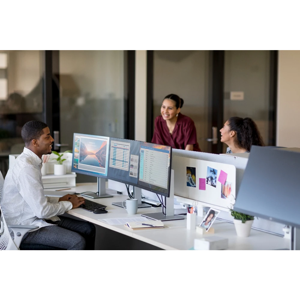 Work comfortably and stay focused with the optimized ergonomics and Quad HD resolution of the HP E27q G4 QHD Monitor with HP Eye Ease that is designed around you. Make life easy for IT with remote manageability.