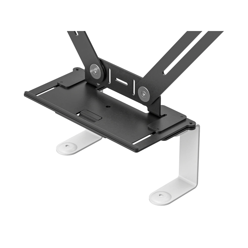 TV Mount for Video Bars saves space and clears the credenza by floating Rally Bar, Rally Bar Mini, or Rally camera above or below the display. Angle and mounting depth adjustments ensure a flush fit. The versatile swing-arm design and industry-standard VESA compatibility work with wall- and cart-mounted displays up to 248.92 cm (98 inches) in size. In rooms where a high mounting position makes sense, the 10? video bar tilt down adapter delivers a room-wide view with the right angle for video meetings. Whether mounted above the display or below, thoughtful routing keeps cables securely connected and out of sight.