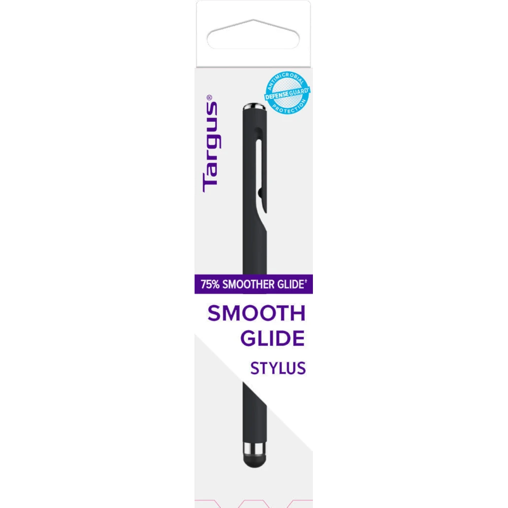 Antimicrobial Smooth Stylus Pen For Smartphones and Touchscreens - Black Targus AMM165AMGL. Device compatibility: Universal, Brand compatibility: Universal, Product colour: Black. Weight: 10 g, Width: 90 mm, Depth: 90 mm This incredibly slim and well balanced stylus has a seamlessly designed integrated pocket clip that is both sleek and functional; the Targus Stylus can go wherever you go, ready to be the extension of your hand and your creative partner as you sketch, write, and create on your device with greater freedom. Unlock greater functionality with your tablet or smartphone as you create hand-written notes, have greater freedom to draw, find improved accuracy when you edit photos, and easily sketch your ideas as you use the all new Targus Stylus in your own way.